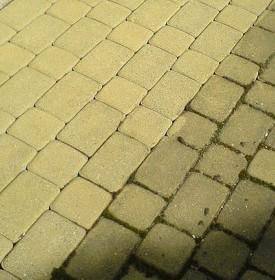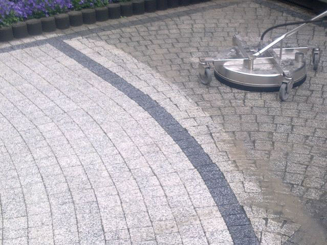Do czyszczenia kostki brukowej wykorzystujemy skuteczna, nową metodę. Urządzenie wysokociśnieniowe zimno- lub gorącowodne w połączeniu z profesjonalną myjką talerzową, przeznaczoną do mycia dużych powierzchni. Dzięki systemowi odsysania myjka wykorzystywana jest do prac czyszczących zapewniając pozostawienie nieskazitelnej czystości bez pozostałości wody i zanieczyszczeń. Metoda ta jest ma również zastosowanie wewnętrz obiektów.