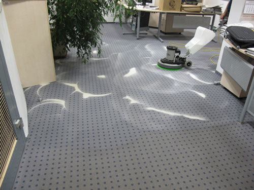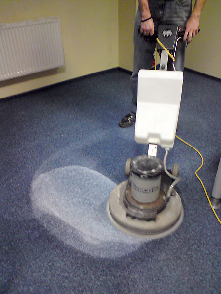 Środek czyszczący (specjalny szampon) nanoszony jest na powierzchnię wykładziny
