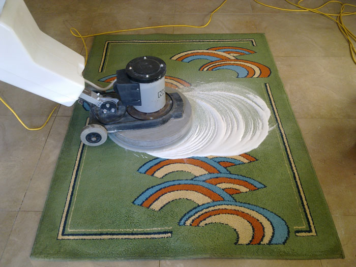 150 obrotów na minutę, wcierając szampon w wykładzinę oraz go spieniając.